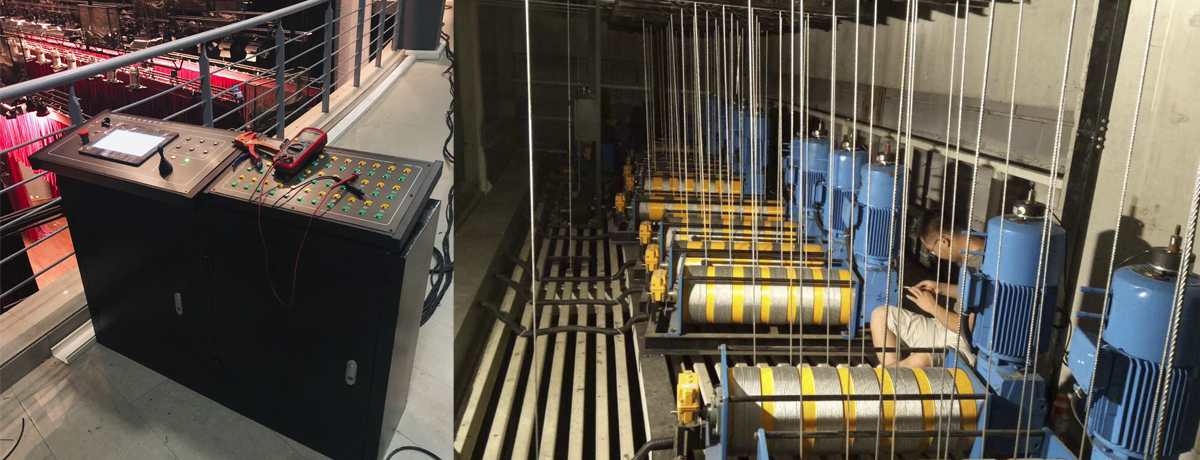 上海古权电子科技有限公司为此次改造提供了所有设备及全程安装调试服务。更换了电动景幕升降系统及电动灯光升降系统共计16套,主要包含电动吊杆机、支点滑轮、转向滑轮组、限位装置、钢丝绳和舞台机械控制系统。严格按照规范进行施工,满足使用方的要求。设备安装配线准确、可靠。经过设备的信号测试,单机负载能力、整体组合能力均达到要求,稳定性、安全性、控制指令响应性均达到要求。各电气线路间经绝缘电阻试验均合格,线槽敷设连接紧密,接口光滑,导线敷设线整齐,有标识。设备安装牢固,满足使用需求。本工程严格按照合同约定的预算进行控制,完成合同约定的全部内容。实施的全过程严格执行国家的安全生产规定,履行各项安全生产的规章制度,达到了合同约定的安全生产目标,全过程无安全生产事故。