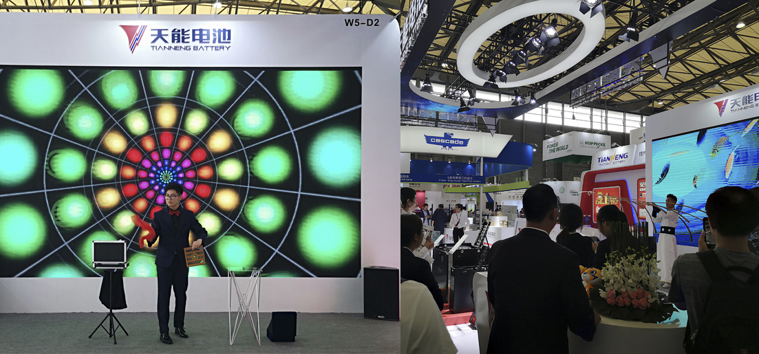 在上海新国际博览中心W5馆D2展位,现代、简洁、科技感十足的天能展区人山人海,吸引了来自德、美、俄、英、意、日、韩等国家和地区客户驻足参观。