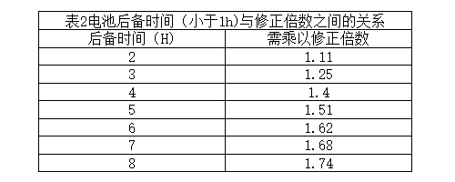 由于电池的放电功率与放电时间不是线性的,即不能只简单除以2,还需乘以修正系数。见下表1,因此205×1.23=252Ah。即可选12V、65Ah电池4组(32块/组)。