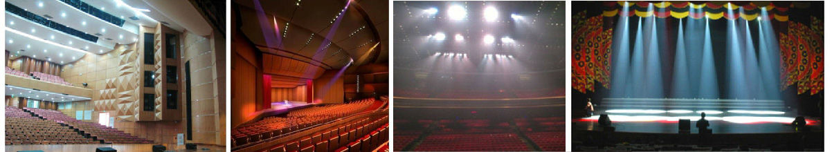 4、散光灯:光线漫散、均称、投射面积大,分为天排散光和地排散光,常见的0.5KW、1KW、1.25KW、2KW等,多用于天幕照射,也可用于剧场主席台的普遍照明。