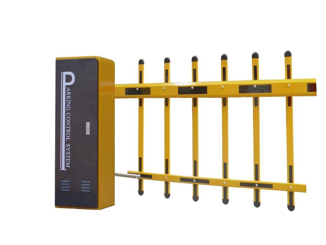 道闸由减速箱、电机、(或者采用液压)传动机构、平衡装置、机箱、闸杆支架、闸杆等部分组成。